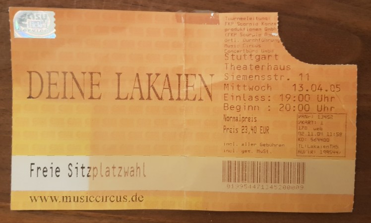 Deine Lakaien Veröffentlicht am 13. April 2005 von JensWeh Theaterhaus Stuttgart Teilen mit: Auf X teilen (Wird in neuem Fenster geöffnet) X Auf Facebook teilen (Wird in neuem Fenster geöffnet) Facebook Gefällt mir Wird geladen … Ähnliche Beiträge